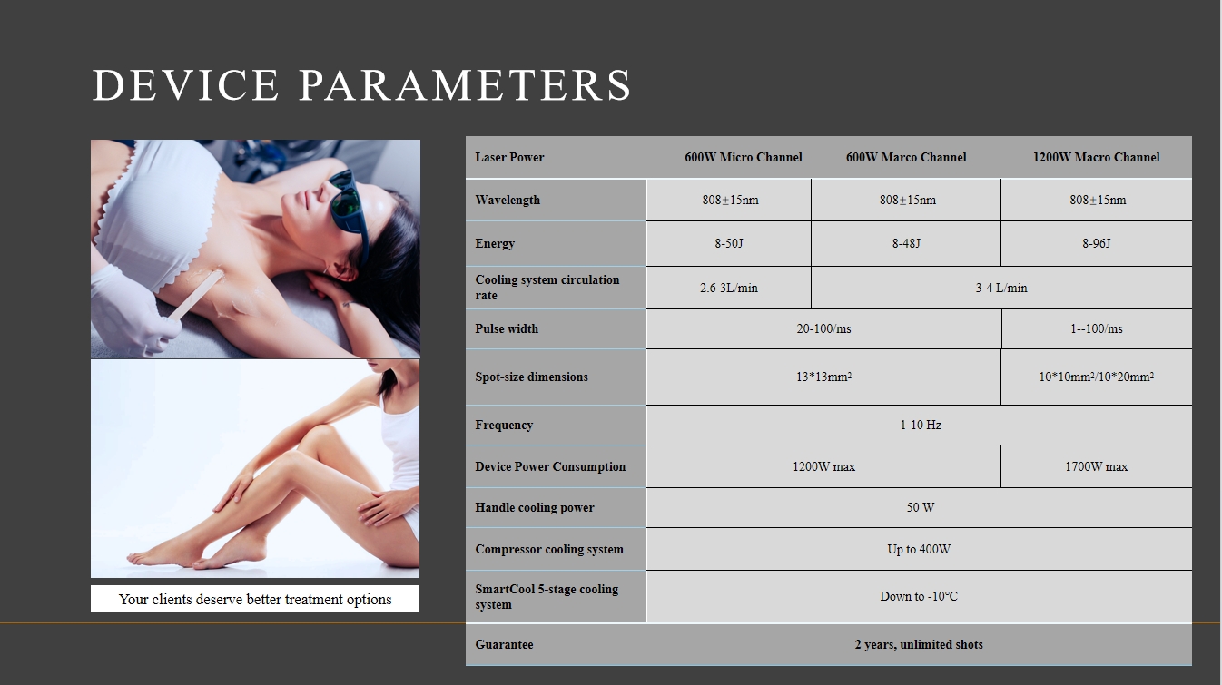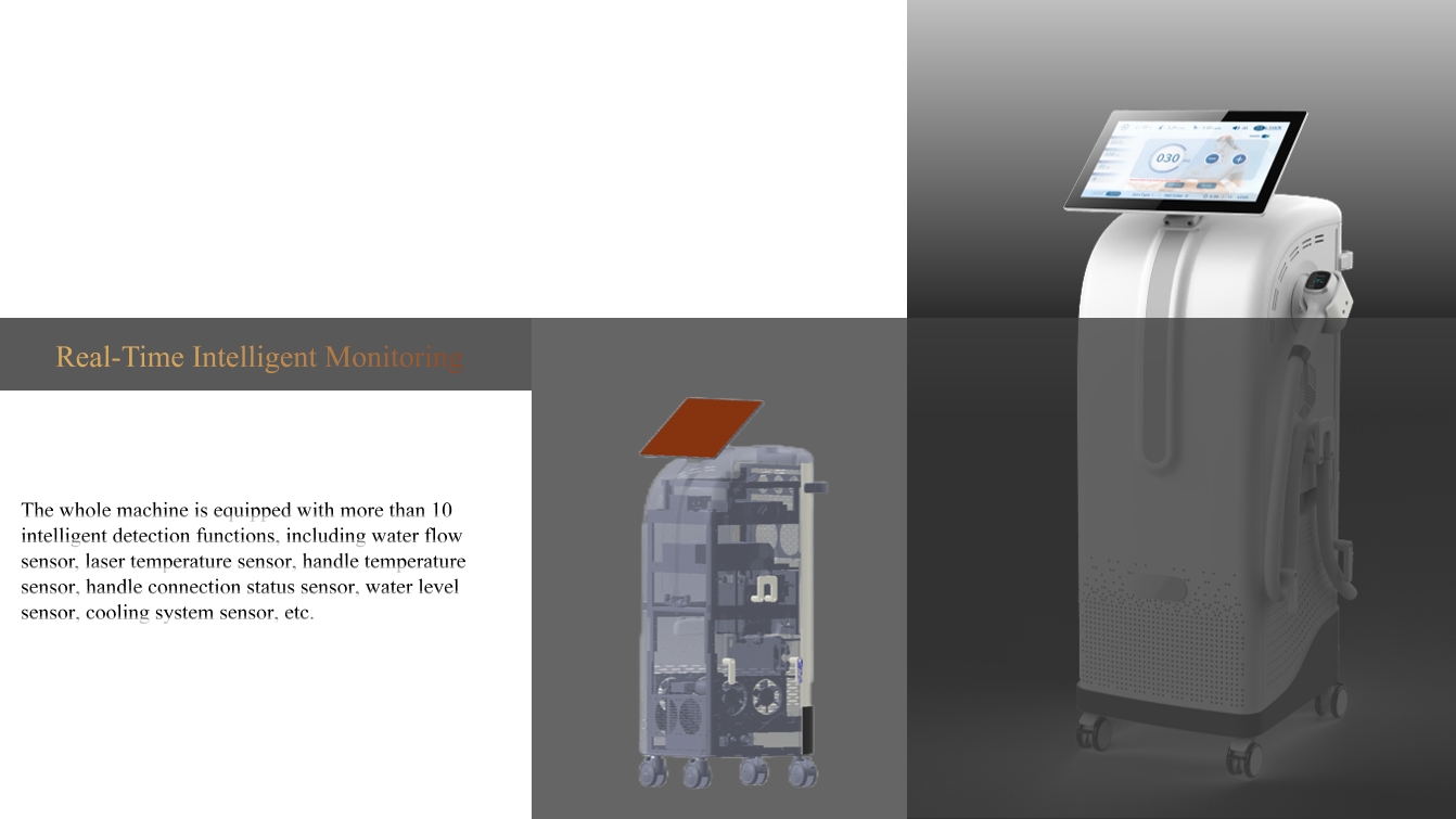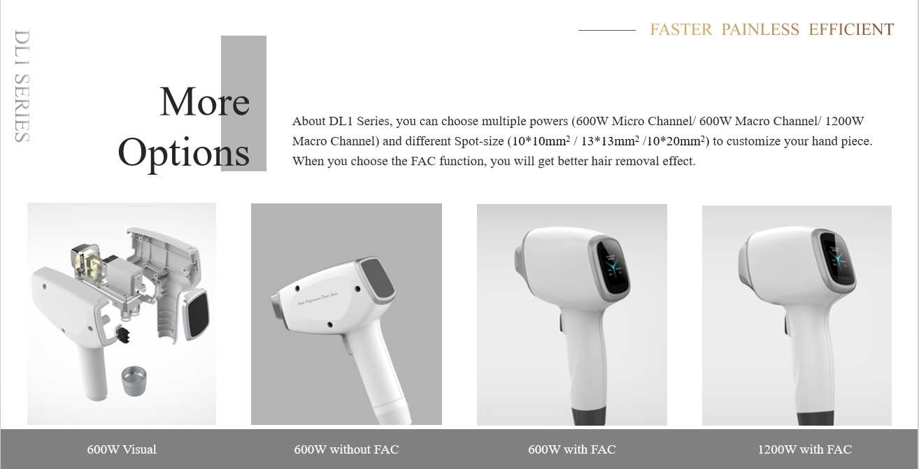 DL1 Diode Laser is a high-power hair removal device that uses laser to destroy the deep tissue of the hair follicles, causing them to stop supplying nutrients to the hair, achieving a natural shedding effect without damaging the surrounding skin tissue. It has a short operation time and good results, and is suitable for salons, spas and clinics.